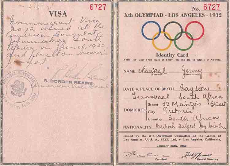 Hier is iets wat ek ‘n paar jaar gelede oor Jennie Maakal geskryf het. Sy is 'n tannie van my (my pa se suster) en het behalwe suksesse by die destydse Rykspele, ook in 1932 te Los Angeles 'n bronsmedalje in die 400m vryslag behaal. Sy het ook in die finaal van die 100m vryslag geswem.