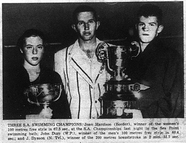 Clarendon High School for Girls pupil in East London Joan Harrison was just 16 years old when she won a gold medal in the 100m backstroke at the 1952 Olympic Games in Helsinki. It would be another 44 years before another South African woman won a gold medal in the pool - Penny Heyns at Atlanta in 1996.
