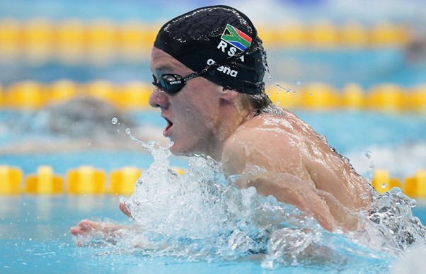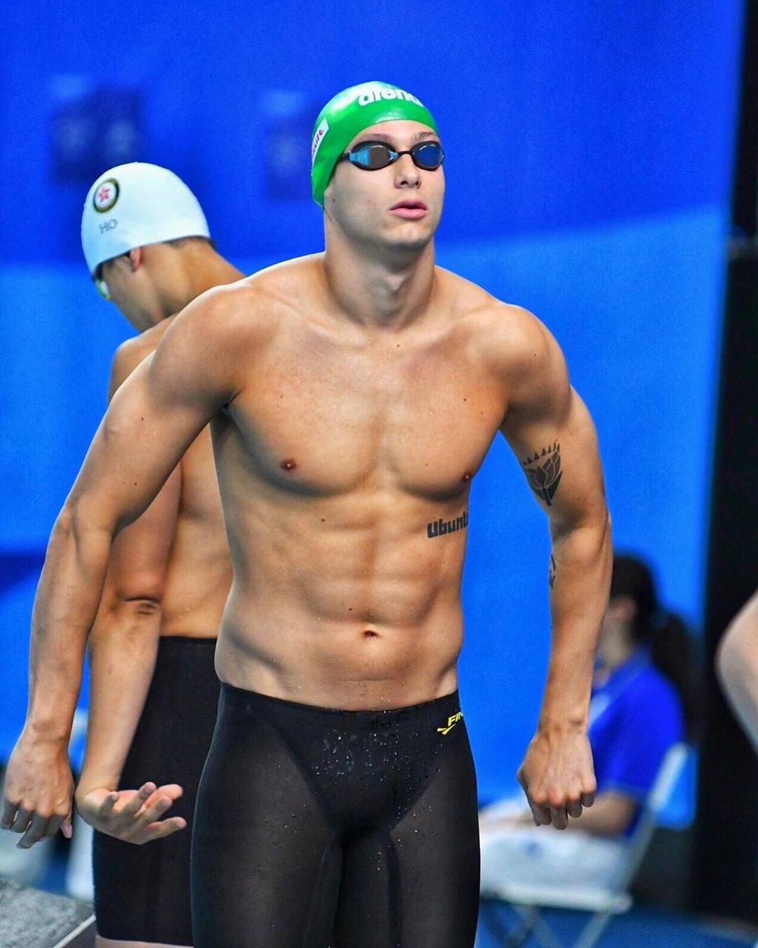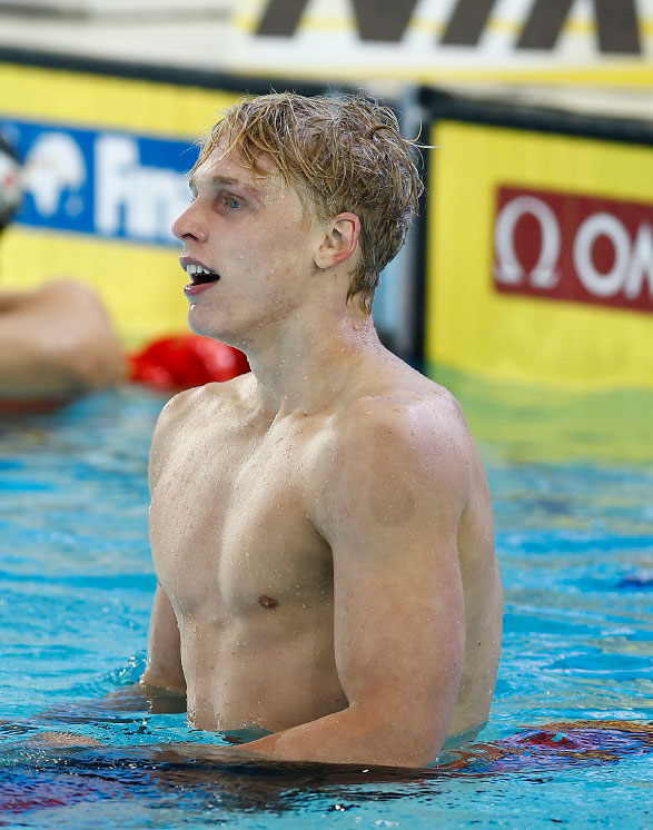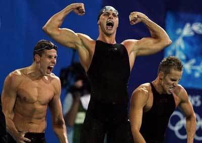 Michael Phelps seems unimprressed by the South African's victory in the 4x00 Frresyle relay - depriving him of an expected 9th gold medal.