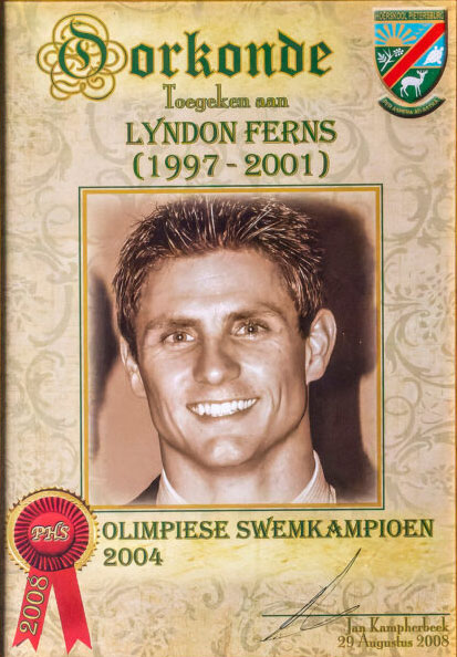 Met hierdie oorkonde word erkenning gegee aan Lyndon Ferns se uitnemende sportprestasies en dien dit ook as inspirasie om hom te motiveer tot ‘n lang en suksesvolle loopbaan en lewe.