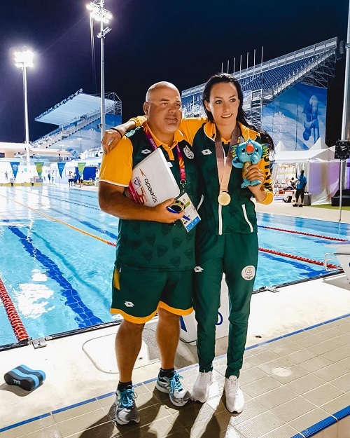 Tatjana Schoenmaker with coach Rocco Meiring.