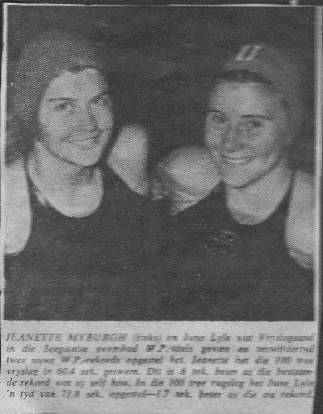 Jeanette Myburgh was a Western Province swimmer who came second in the 100m freestyle behind Toy Myburgh of Transvaal at South African championships in 1956. In her heat she broke Joan Harrison's SA record by 1,1 seconds.