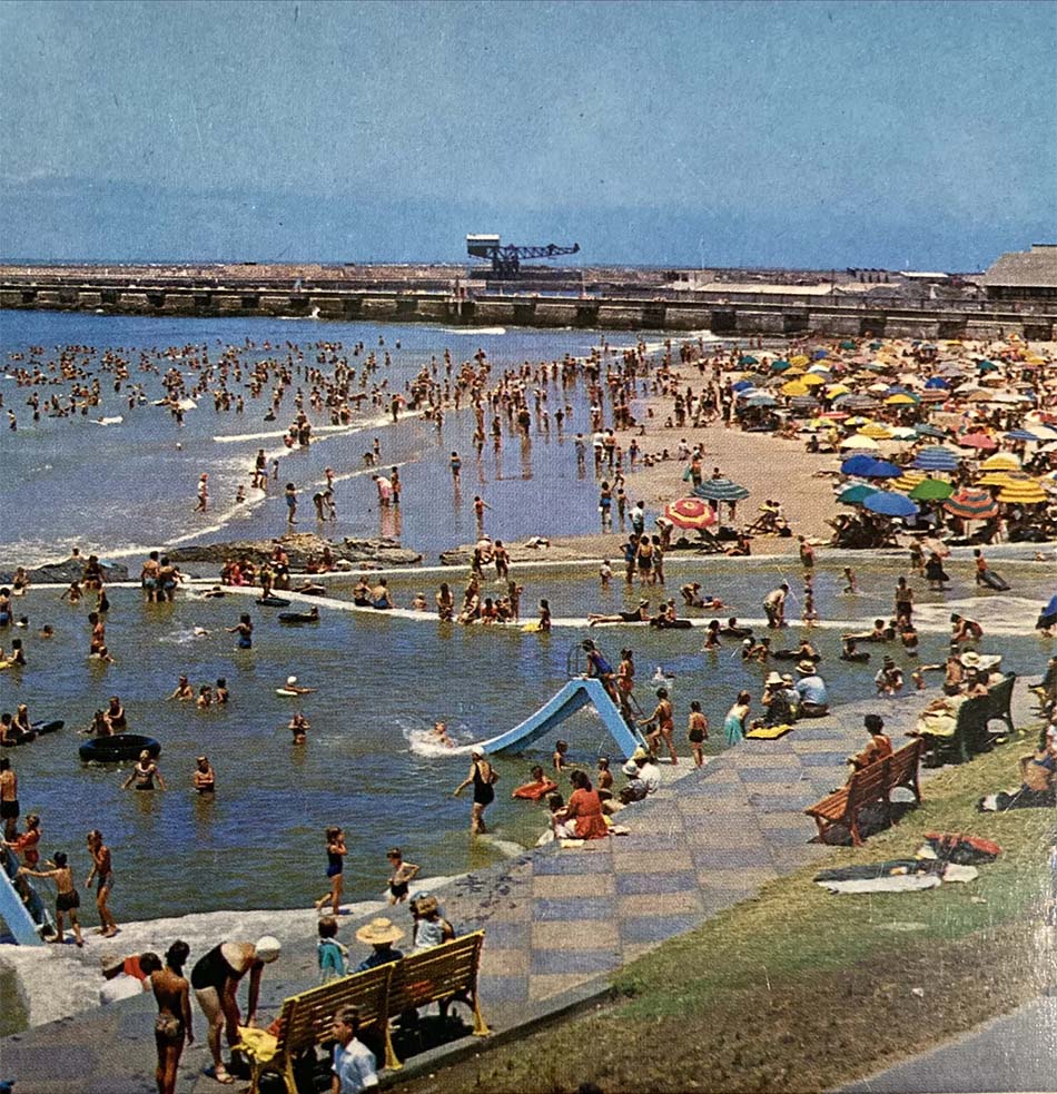 The Orient Pool Complex we know today has quite an interesting history. In 1904 the municipality constructed a pair of bathing pools on the rocks at the spot where the MV Quanza had run aground in 1872. The pools would be known as the Quanza Pools. They were constructed as a result of an initial accident. The Town Engineer was experimenting with explosives and had blasted a great hole in the rocks at that point. Water immediately rushed in and the resulting pool became a popular place for women and children. As a consequence, the Town Council decided to build a proper pool, in fact, two pools were built: one for men, the other for women and children. The protests that ensued, however, saw the Council change its mind and mixed bathing was allowed for the first time in the larger pool while the smaller one remained the domain of the women and children. In the 1908/09 summer season electric lights were added to allow bathing during the summer nights. More upgrades followed over the years and the South African aquatic championships were held here in 1938, and again in 1951. It was here where Joan Harrison trained and learned to swim, a place where hours of practice climaxed in a gold medal at the 1952 Olympic Games in Helsinki.