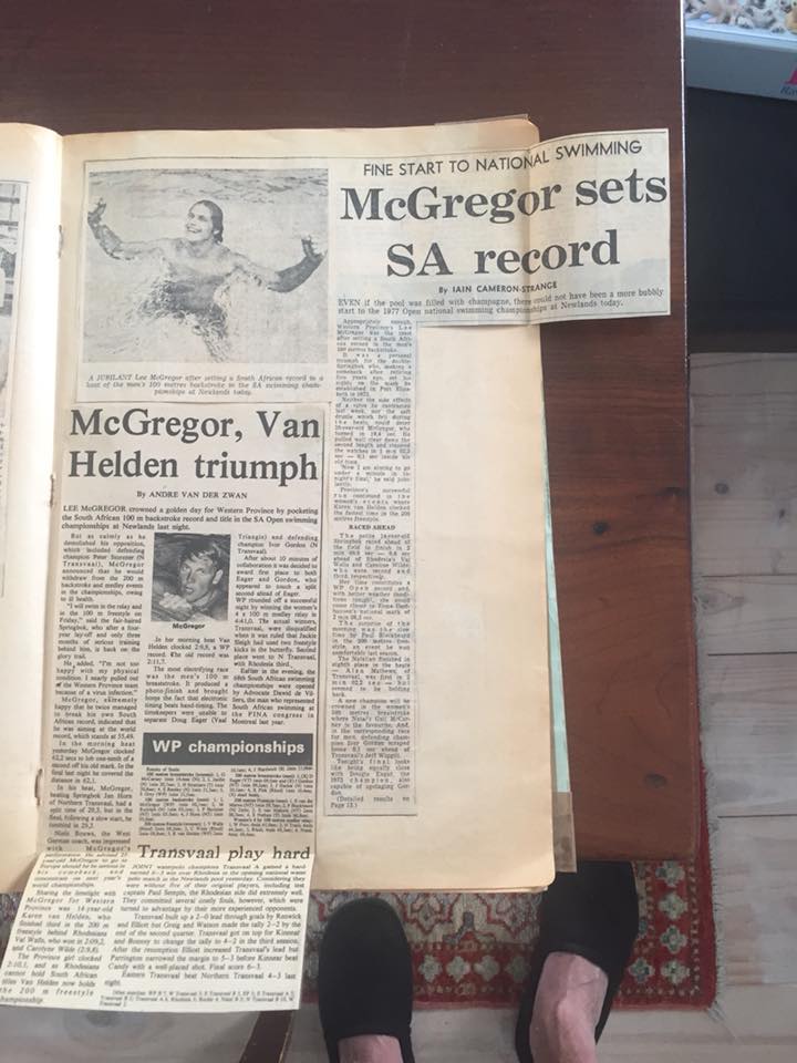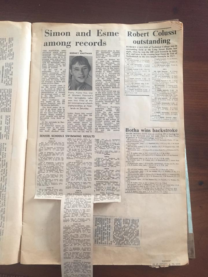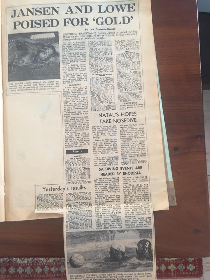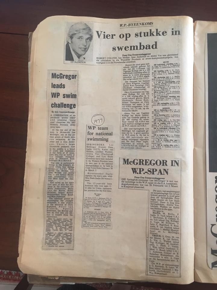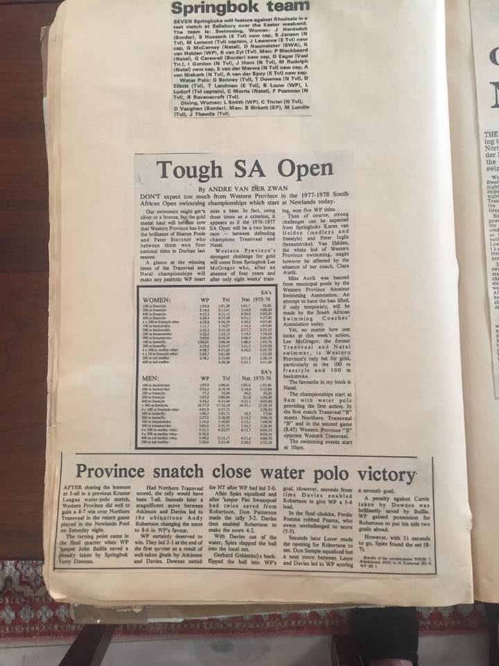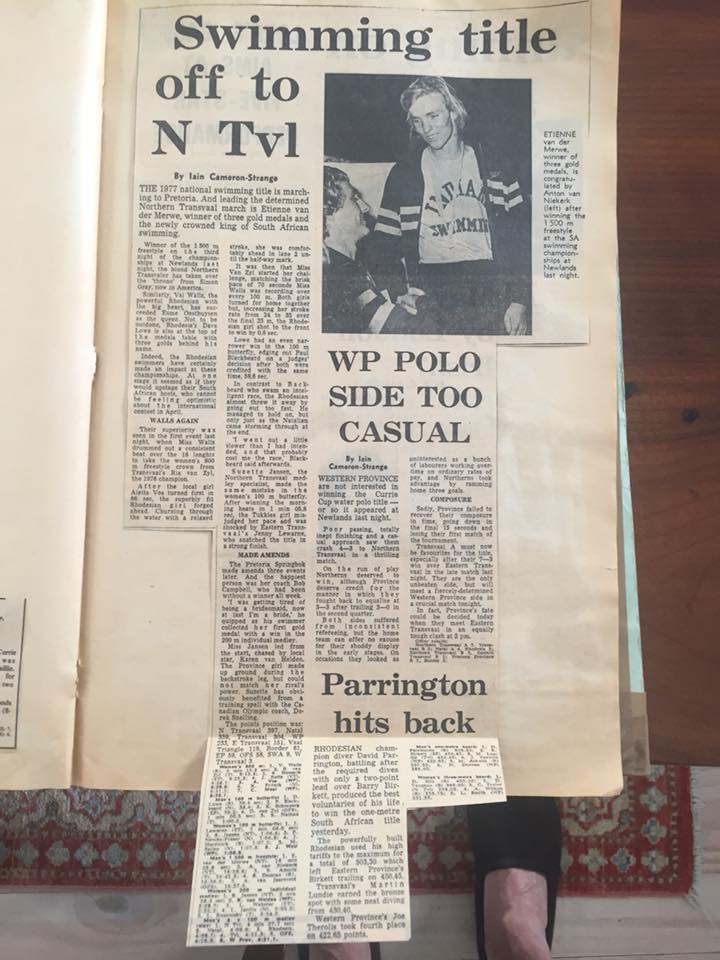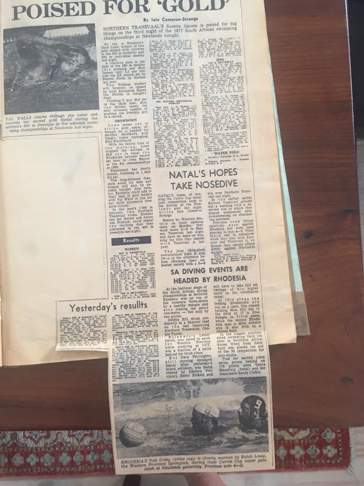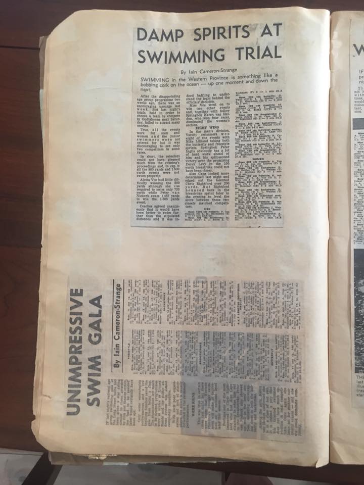 Ian Meliier's collection of local newspaper articles from the 1977 South African Aquatic Championships.