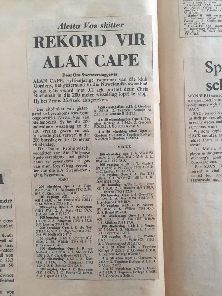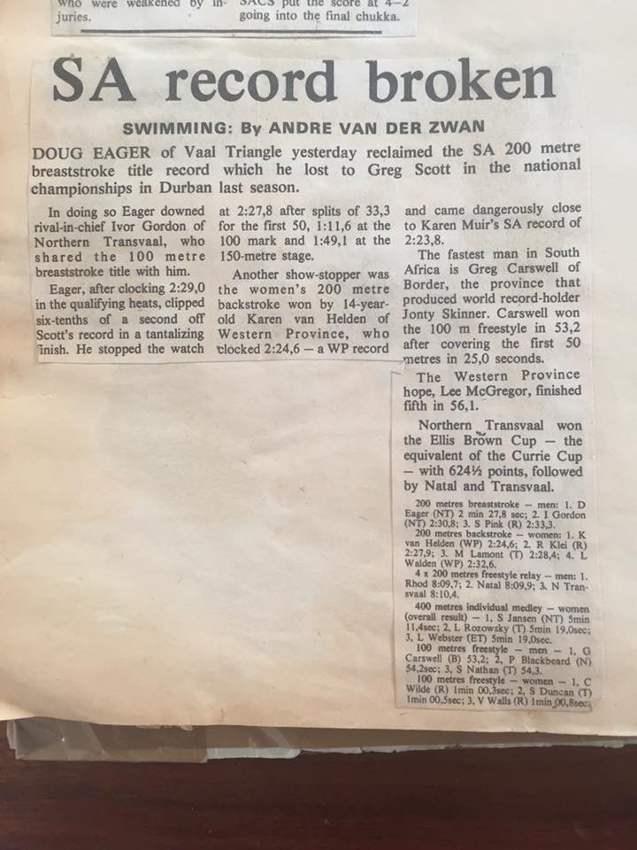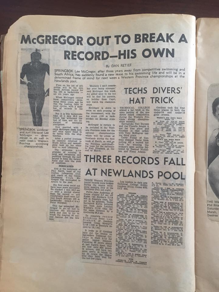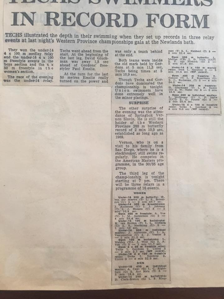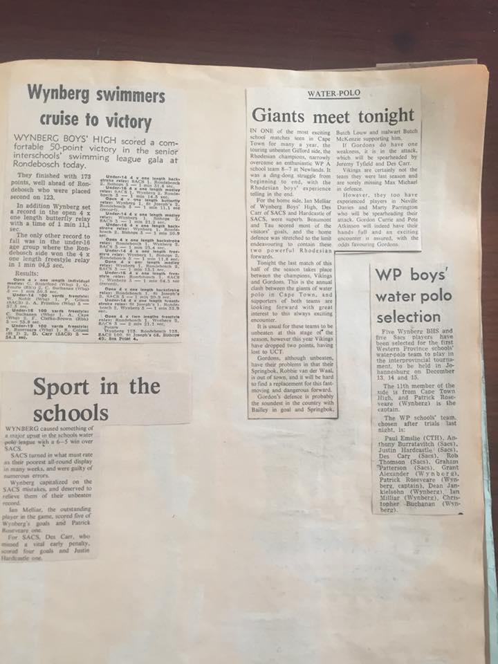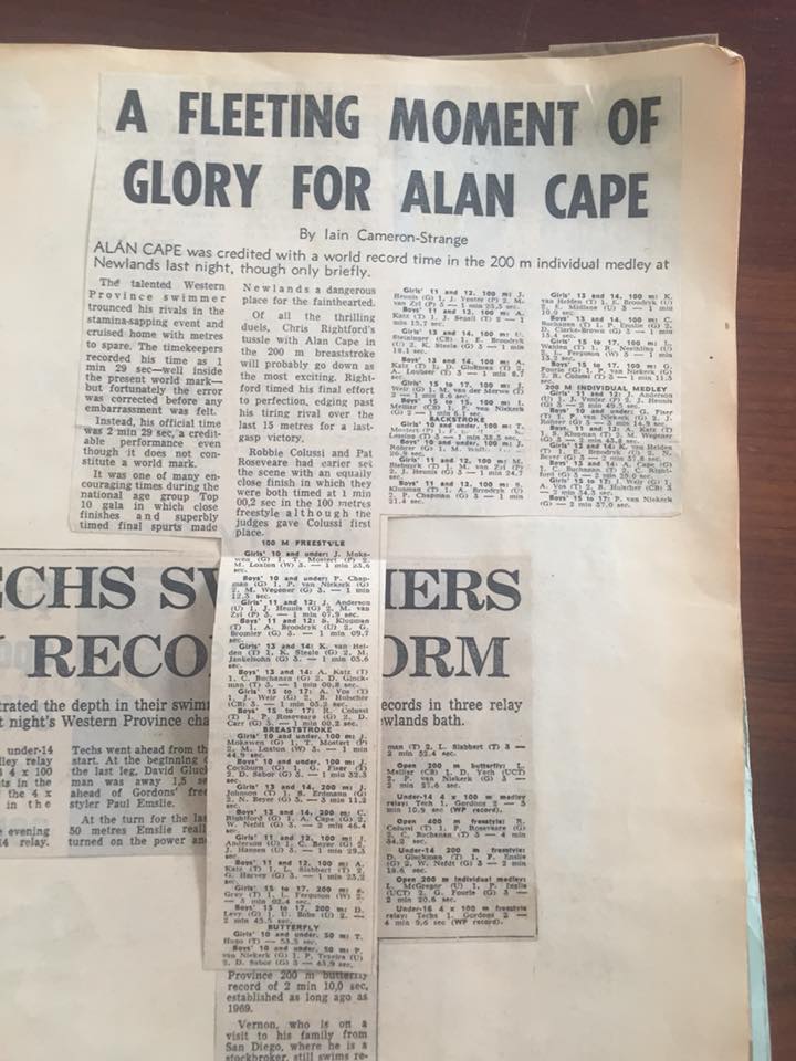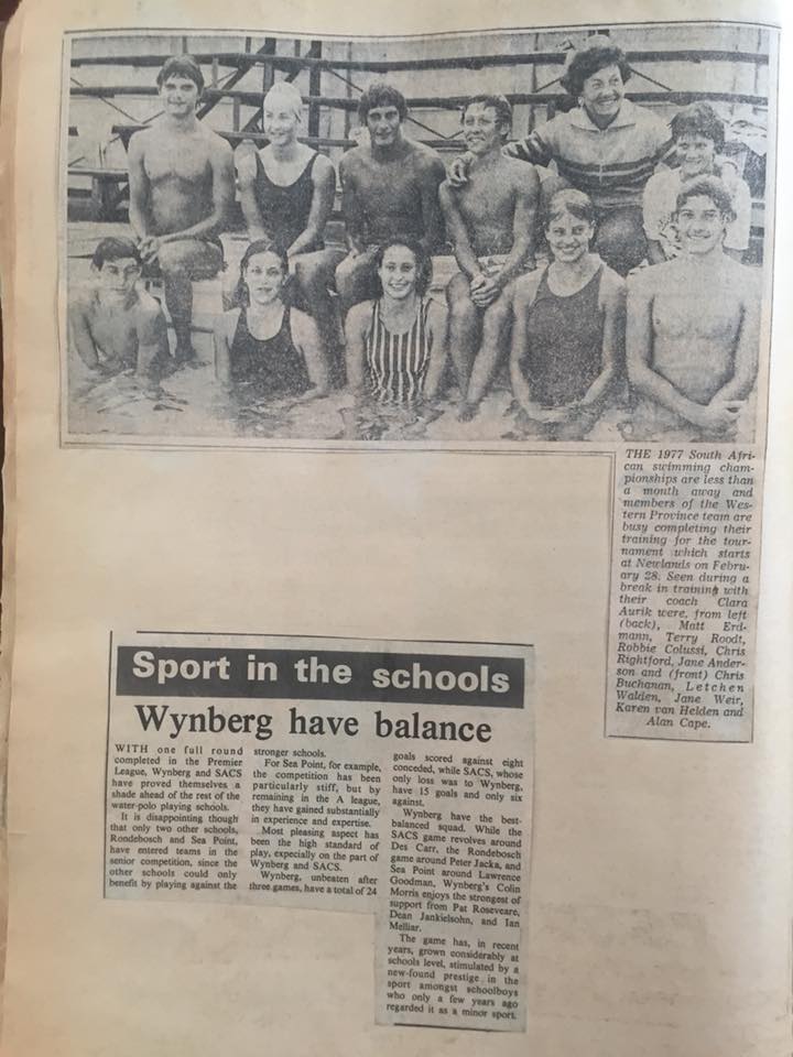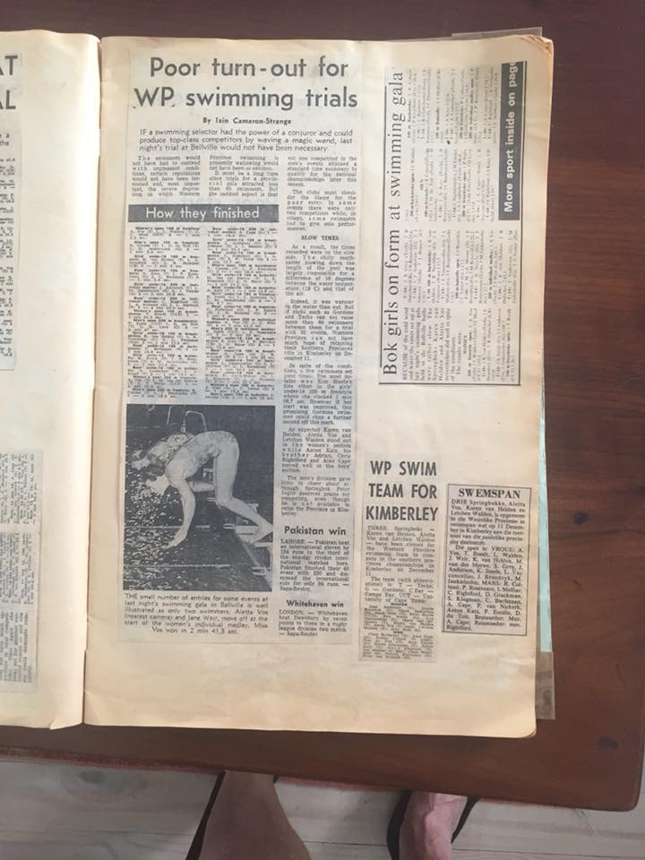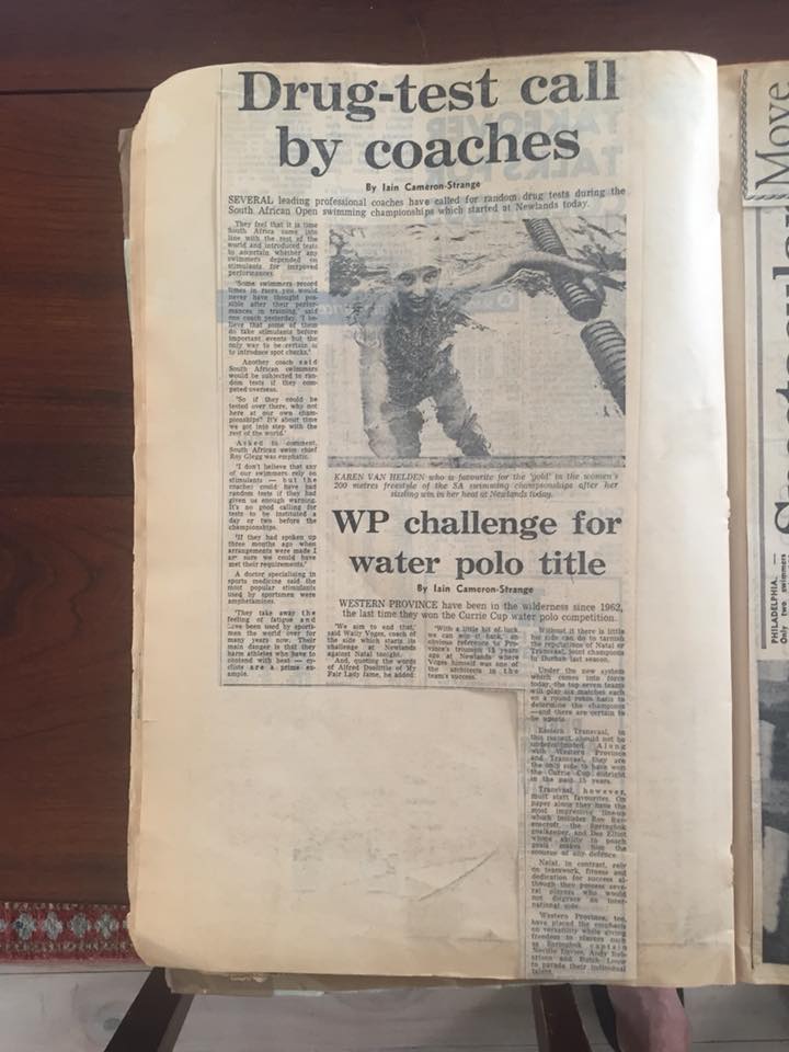 Ian Meliier's collection of local newspaper articles from the 1977 South African Aquatic Championships.