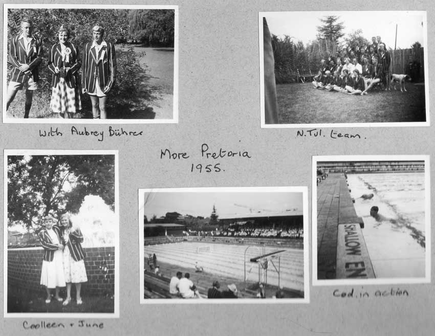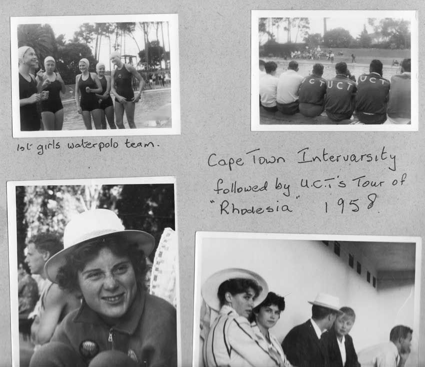 Intervarsity in 1957 in Bloemfontein and 1958 in Cape Town in Cape Town and won the backstroke and was in the SA Universities Team ( don’t think we swam against anyone !!), and was part of the UCT Team to tour Rhodesia at the end of ‘58 (So was Jeanette Myburg, Sue Roberts and Sylvia Wetton)