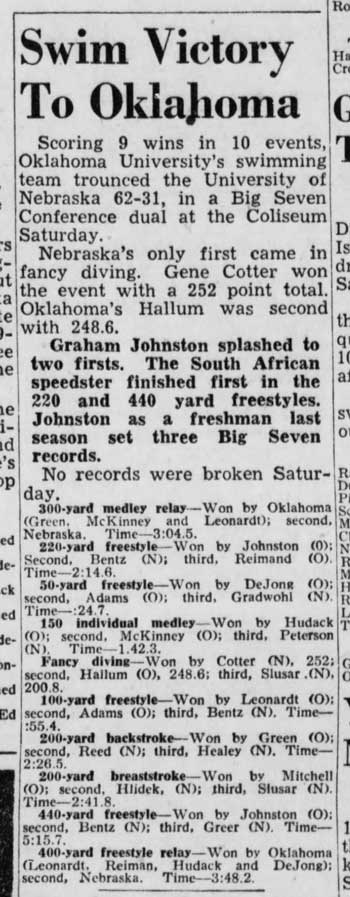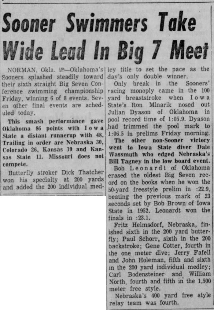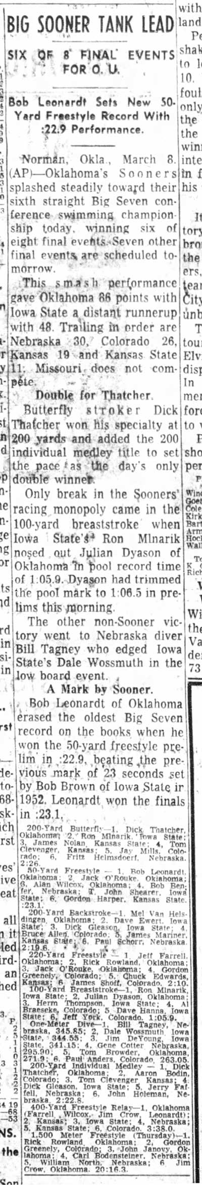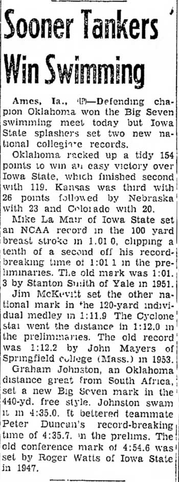 1954 March 14 Exiles Oklahoma Results Big Seven Meet 2