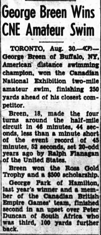 1954 Aug 30 Peter Duncan In Canadian 2 Mile Swiim Race 2