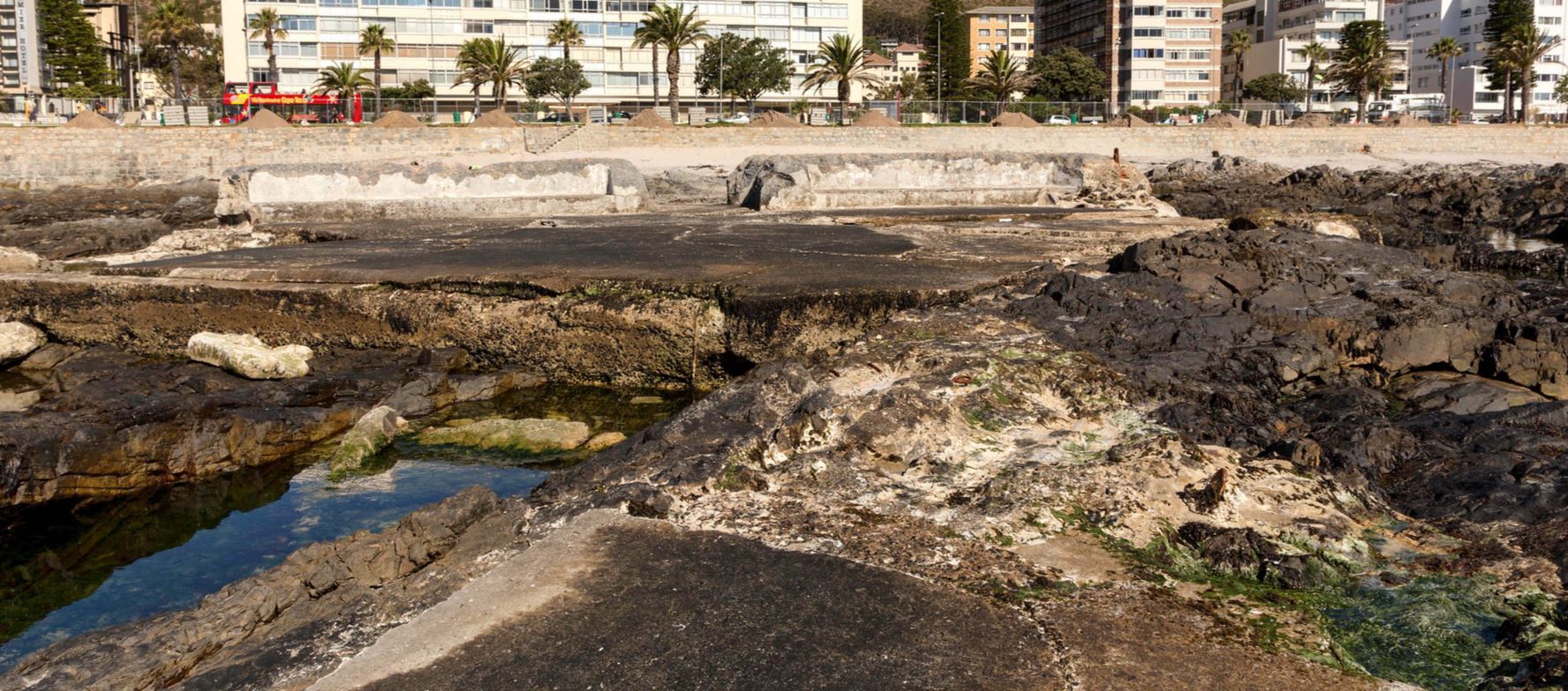 The first pool from the north along the Atlantic coastline of Cape Town is a derelict site known as Graaf's Pool.