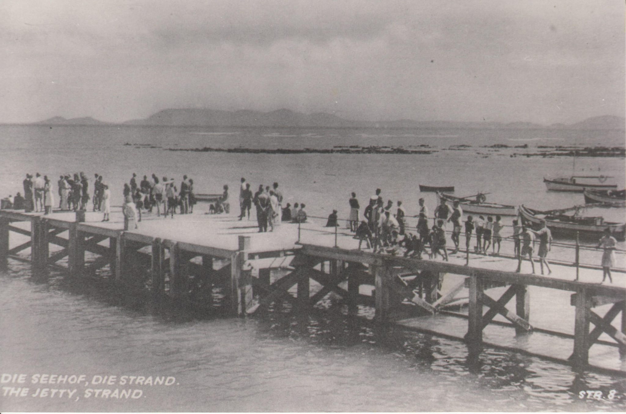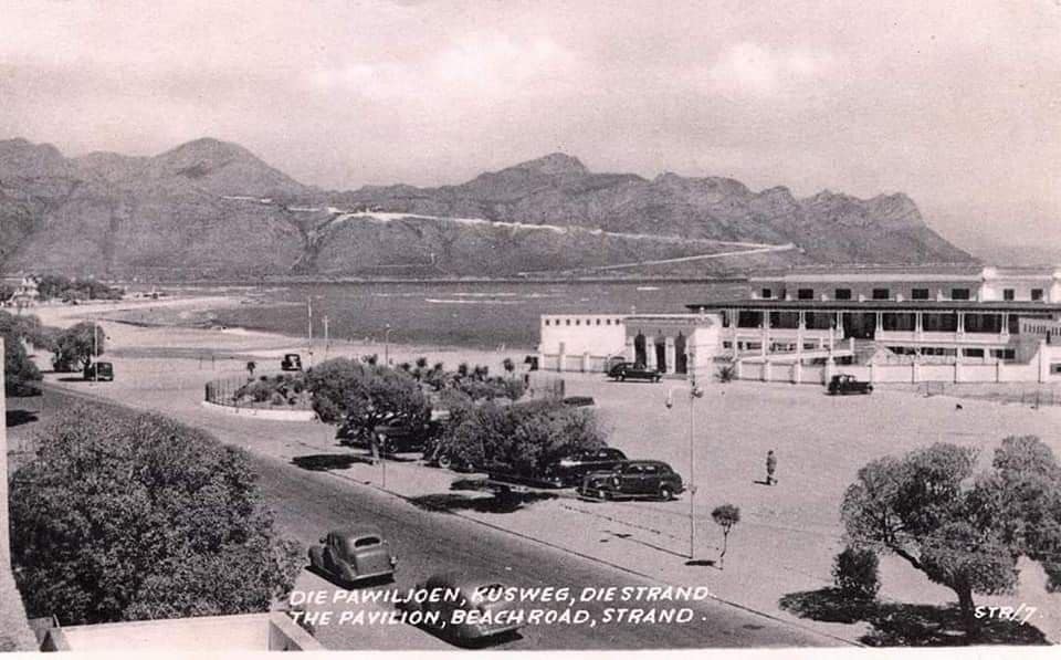 The Strand is one of the oldest holiday towns in South Africa, and the structure in the black-and-white photo (taken between 1914 and 1920) was built specifically for the sake of holidaymakers and bathers.