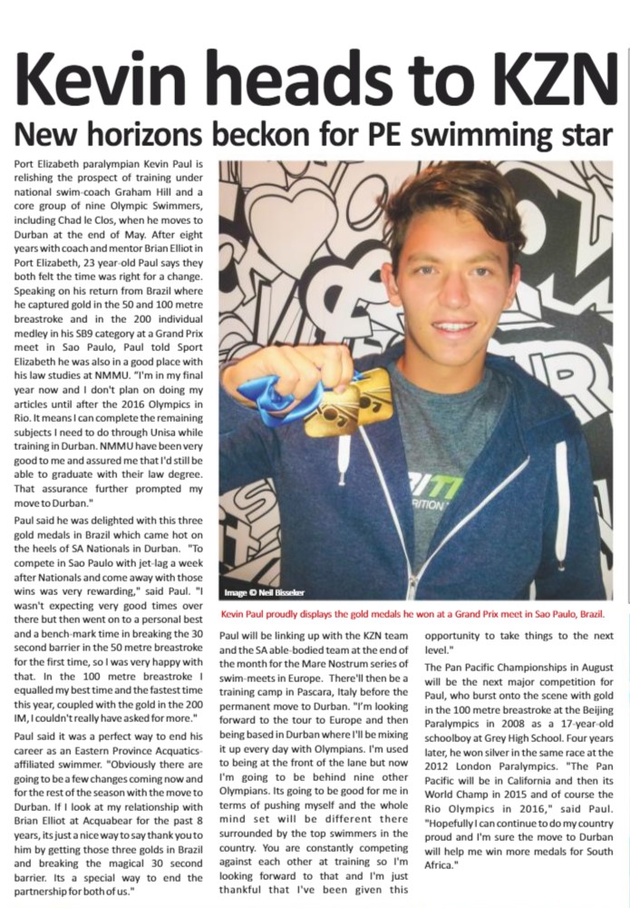 ‘Last year I moved from PE to Durban to join SA national coach Graham Hill and I have been really happy with how well my times have improved,’ Paul said.
