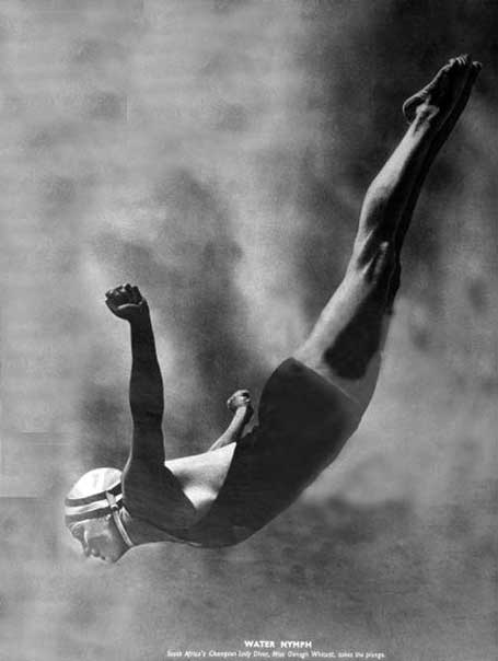 Oonagh Eleanor Allison Whitsitt was born in Durban on 1st May 1910 and became a Natal diver, whose father was the Chief Constable of the province. She later married Edward Shaw, who was to become Mayor of Durban and had a daughter Clodagh. She was a member of the Cygnus Amateur Swimming Club.