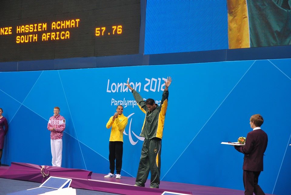 On 1 September 2012, Hassiem won a bronze medal in the 100 m butterfly, setting a new African record of 57.76 seconds in the final