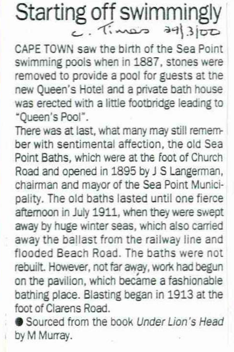 Sea Point was greatly influenced by Victorian England, and seaside bathing became popular in 1800. The area was established as a seaside vacation resort in 1880 with a number of bathing, seaside pools and tidal pools popping up around the suburb.
