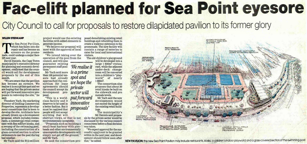 In 1862 the Sea Point tramline was established and in 1875 the total population for both Sea Point and Green Point reached 1 425. In 1904, it reached 8 839.