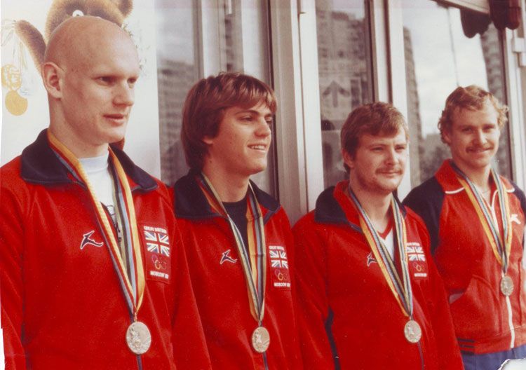 The GB men's 4 × 100 metre medley relay team - Duncan Goodhew, David Lowe, Gary Abraham and Martin Smith