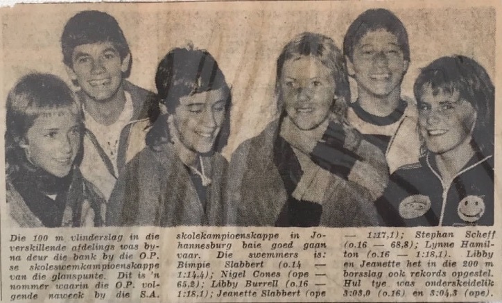 I think I was just a little bitty girl that I used to sit alongside the swimming pool. When my, my siblings are swimming. I believe I swam, I started swimming with a professional coach, probably one of the legends of South African coaching, Peter Elliot. I believe I was maybe just five. When I started swimming. We were, he had the great group, Peter Elliott used to be in the textile industry and, and he was, he showed himself as being a fantastic coach and a group of people, I think my dad was part of that group, encouraged him to go all out. He built his own pool in Walmer, Port Elizabeth, and eventually a second pool and then a third teaching pool. And so I was very fortunate to be part of that group. I swam with him right up until standard nine, and then I moved over to another legendary coach, Tom Connell. He was the Grey High School coach and he bowed down and allowed a girl to join the group. I was the only girl in the group and the likes of the late Andre Kotze, Richard Maybery, and people like Andrew Dean and Kobus Scheepers, they were all part of the group and I was just the lone girl. He was a really specialist breaststroke coach as well as being a sprint coach, and I decided to experience the change before I ventured off to Stellenbosch University.