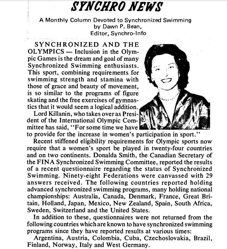 In 1972 South Africa was one of 14 countries that held a national Championships for synchronised swimming.